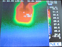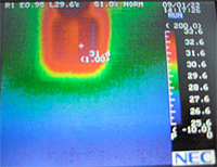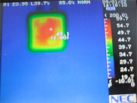? 點(diǎn)亮LED燈,于5分鐘后以熱感機(jī)測(cè)量其溫度梯度分布,并拍照留存。